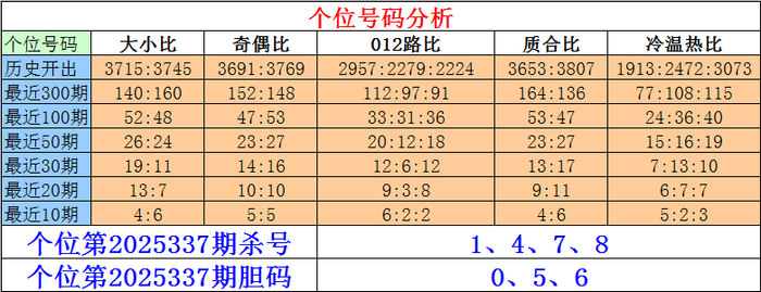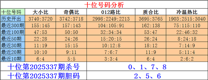近期个位质数号码走冷,上期回补之后,本期瞻望再出质数;近期该位大号走势较冷,现在遗漏1期,本期防大号回补。个位杀号:1478,胆码体恤:056。