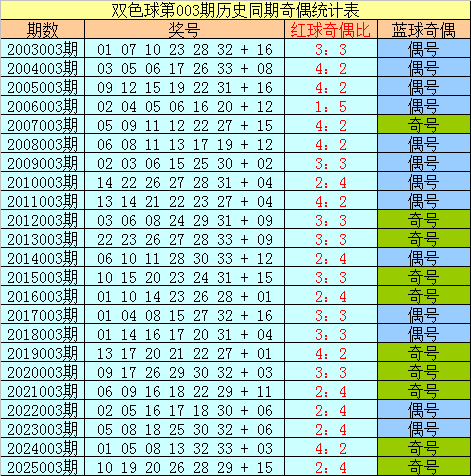 蓝球分析:在第003期历史同时开奖中,蓝球号码奇偶比为10:13,最近5年同时奇偶走势为:奇、偶、偶、奇、奇,本年同时瞻望再脱落数号码,参考蓝球01。