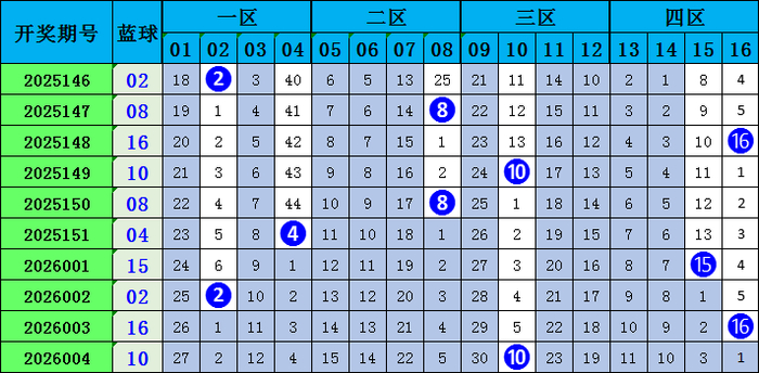 双色球蓝球笼统分析: