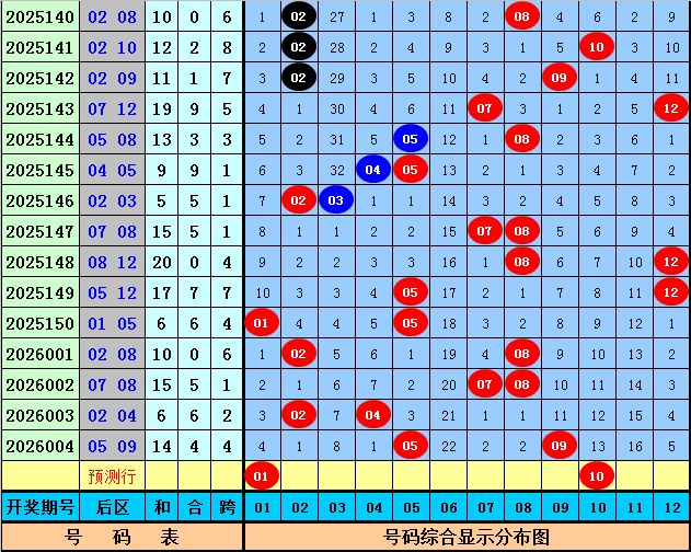 后分裂析:上期后区开出号码05和09,最近10期后区奖号奇偶比为9:11,大小比为9:11,本期后区看好号码01、06、08、10、11,后区单挑两码01、10。