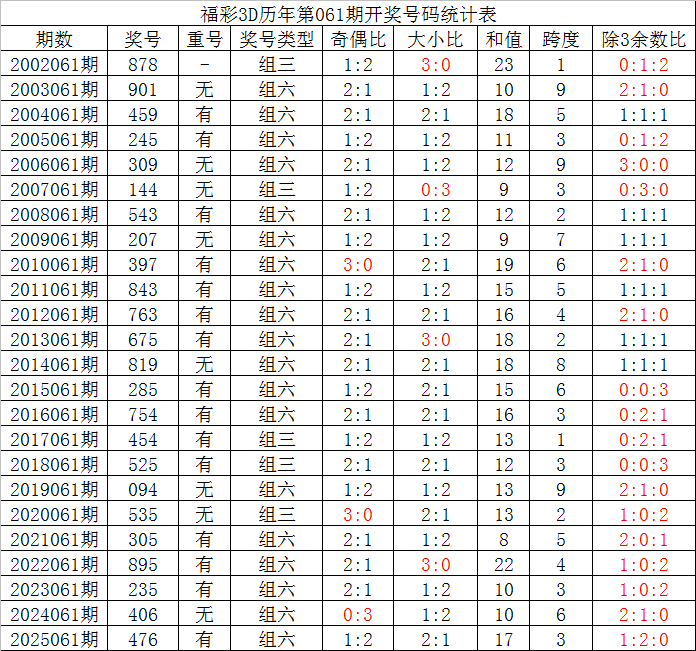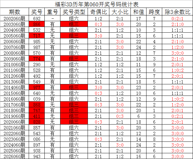 福彩3D第2026061期夏姐保举: