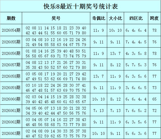 福彩振作8第2026063期开奖转头:02 04 08 09 14 30 33 35 37 38 40 47 52 59 62 65 73 75 76 79深圳市金帝至尊科技有限公司,其中奖号012路比为4:7:9,奖号余数012路比为8:4:8。